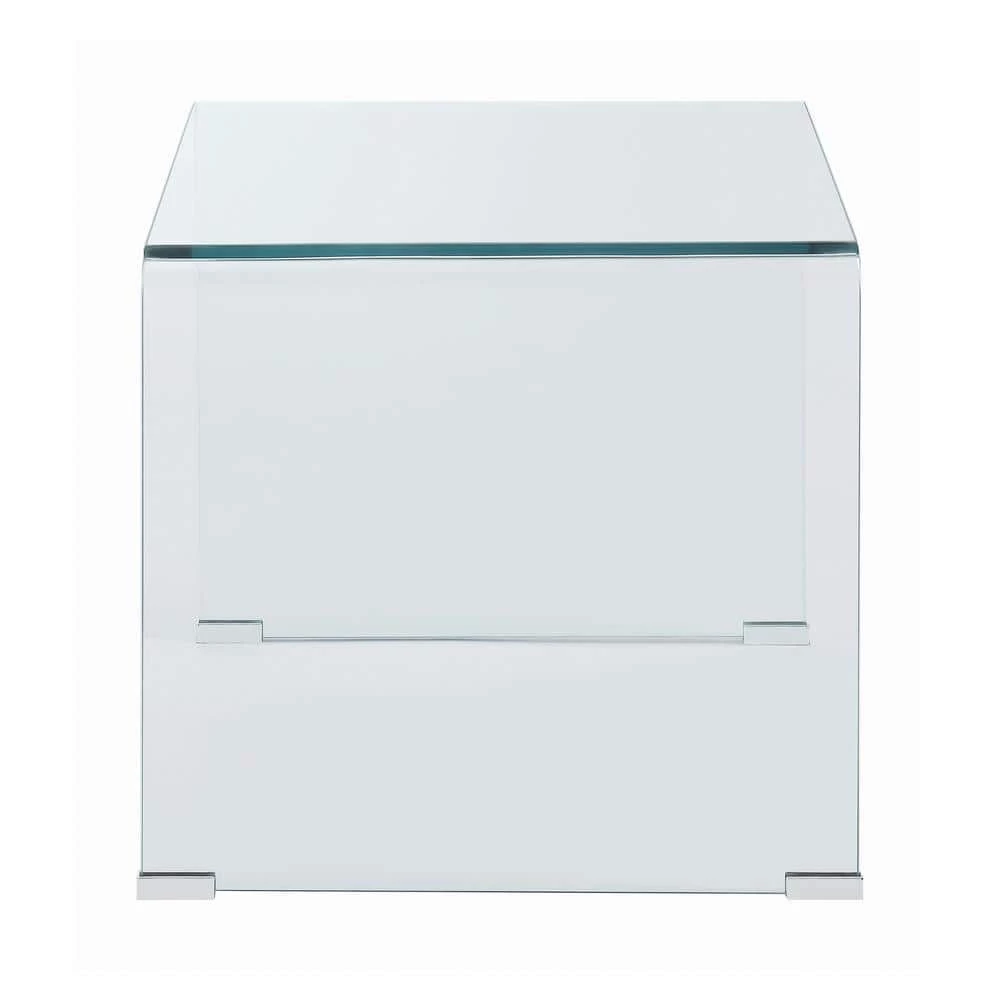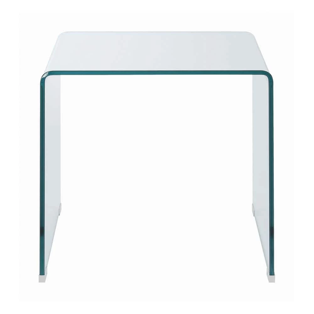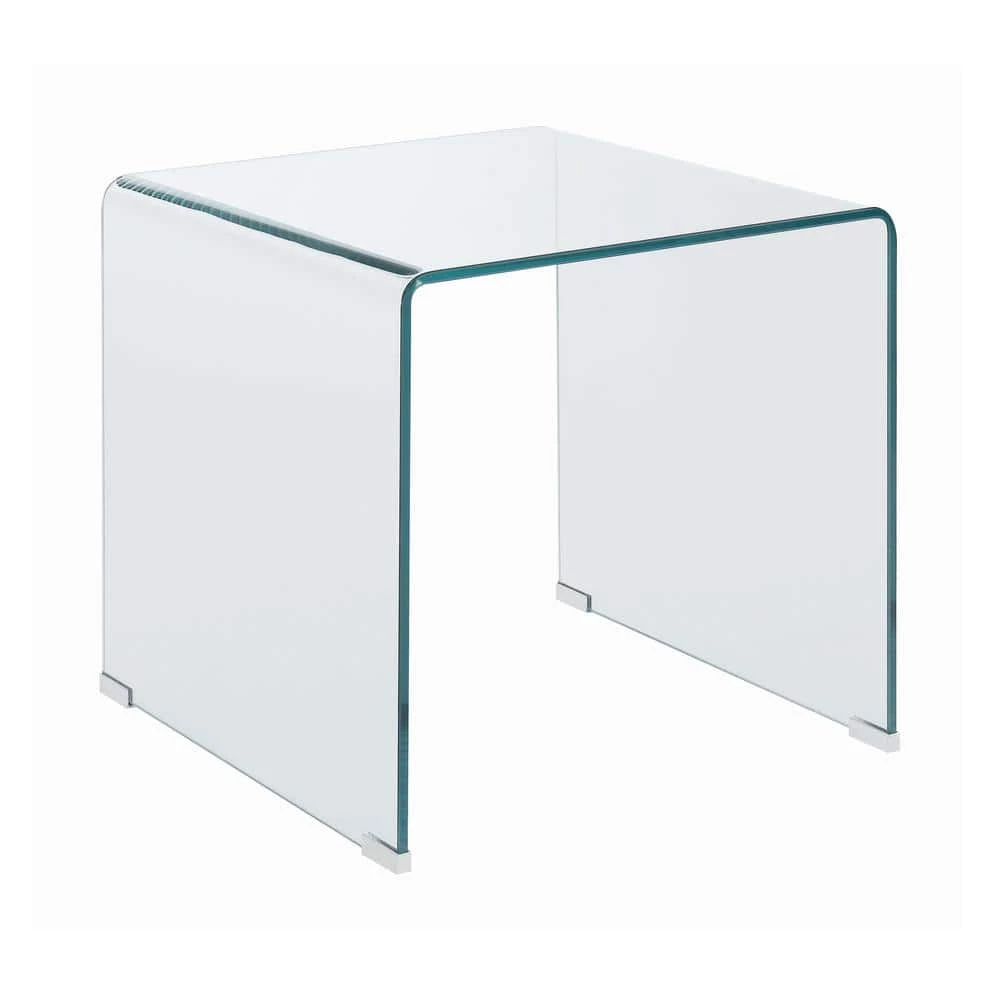 This splendid end table has a contemporary design that’s also enduring. This single-piece table features a clear glass-like material that adds a unique look to the home. Square table top is roomy enough for a decorative modern lamp and a handsome vase or small sculpture. It has an open space design instead of a base so you can put a small potted plant directly on the floor beneath the table top. Can be put beside a contemporary sofa or against a wall as a standalone piece.