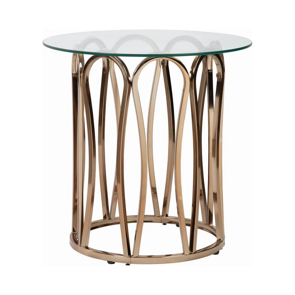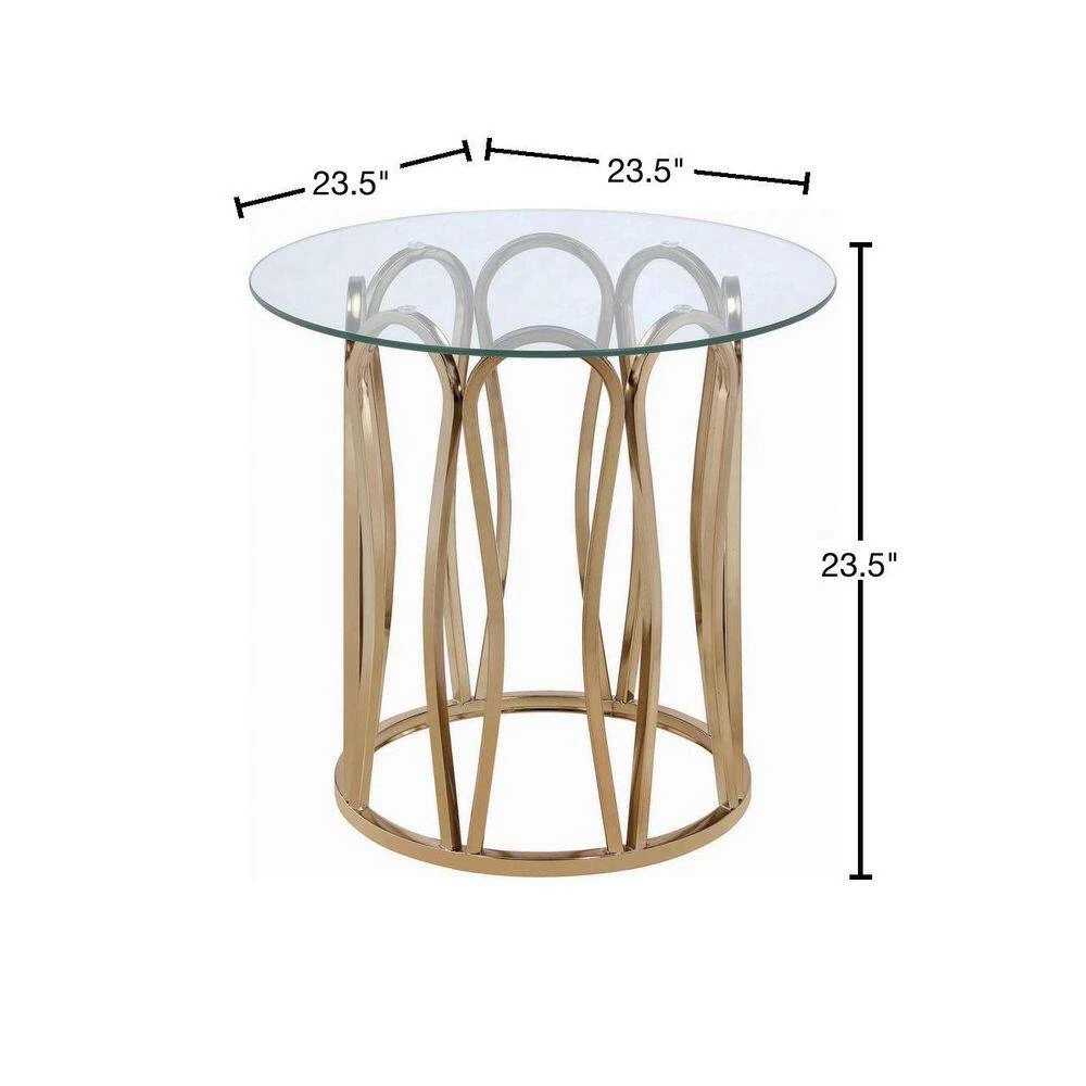 A light and airy ambiance offers elegance and taste. This charming end table plays on an artistic theme and blends beautiful materials. A round glass top perfects the contemporary theme you’re after. Enjoy a decorative base with shaped pieces in a warm chocolate chrome finish that capture attention. Add a delightful accent to a modern living area with this tasteful end table.