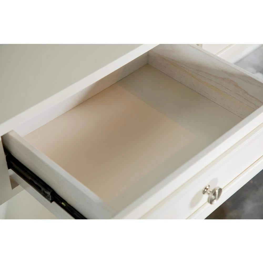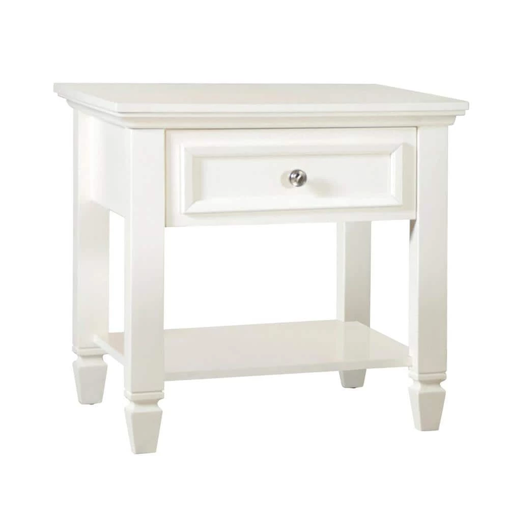 Elegant and classically designed, this end table comes with a cheerful, bright white finish. Perfect for just about any color palettes, the white finish is accentuated by wood molding details. In addition, there is an open lower shelf to keep baskets of books or to showcase decor. Perfect for placing in a coastal style beach cottage or to lend French country charm, this end table also features a spacious, single drawer, adorned with a shiny nickel finished pull. The well-constructed drawer also has an English dovetail joints, as well as full extension metal drawer glides for the easy retrieval of items.