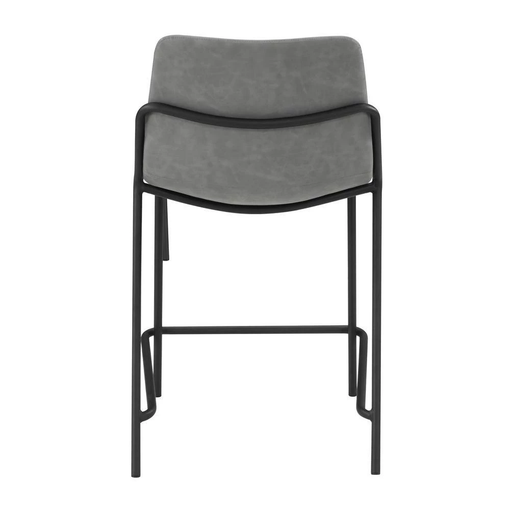 This pair of 2 stools offer a minimal look and a contemporary vibe. Supported by thin and tall frame in a black finish, it has an open and airy design that works with many styles. Each chair has a bucket style, Mid Century inspired seat, which is wrapped in a leatherette that is easy to clean and soft to the touch. In addition, each stool offers a supportive footrest run between the 2 front legs. Add a pair of these stools to a home bar for entertaining.