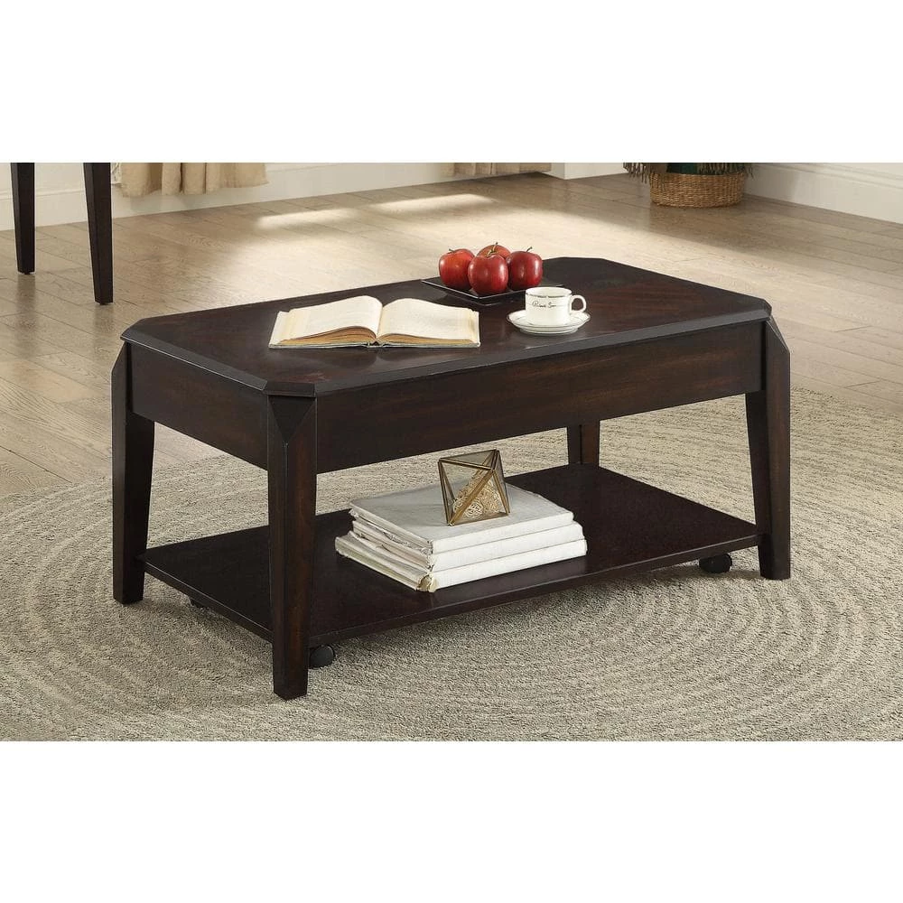 Transform a classic space with the clean lines from this lift top coffee table. Stunning and smooth, this classic silhouette features rounded edges. Ooze refinement with the storage and display options from the built-in storage shelf. Decorate with a decorative potpourri bowl or tray. Create structure with the charming combination of traditional and modern design.