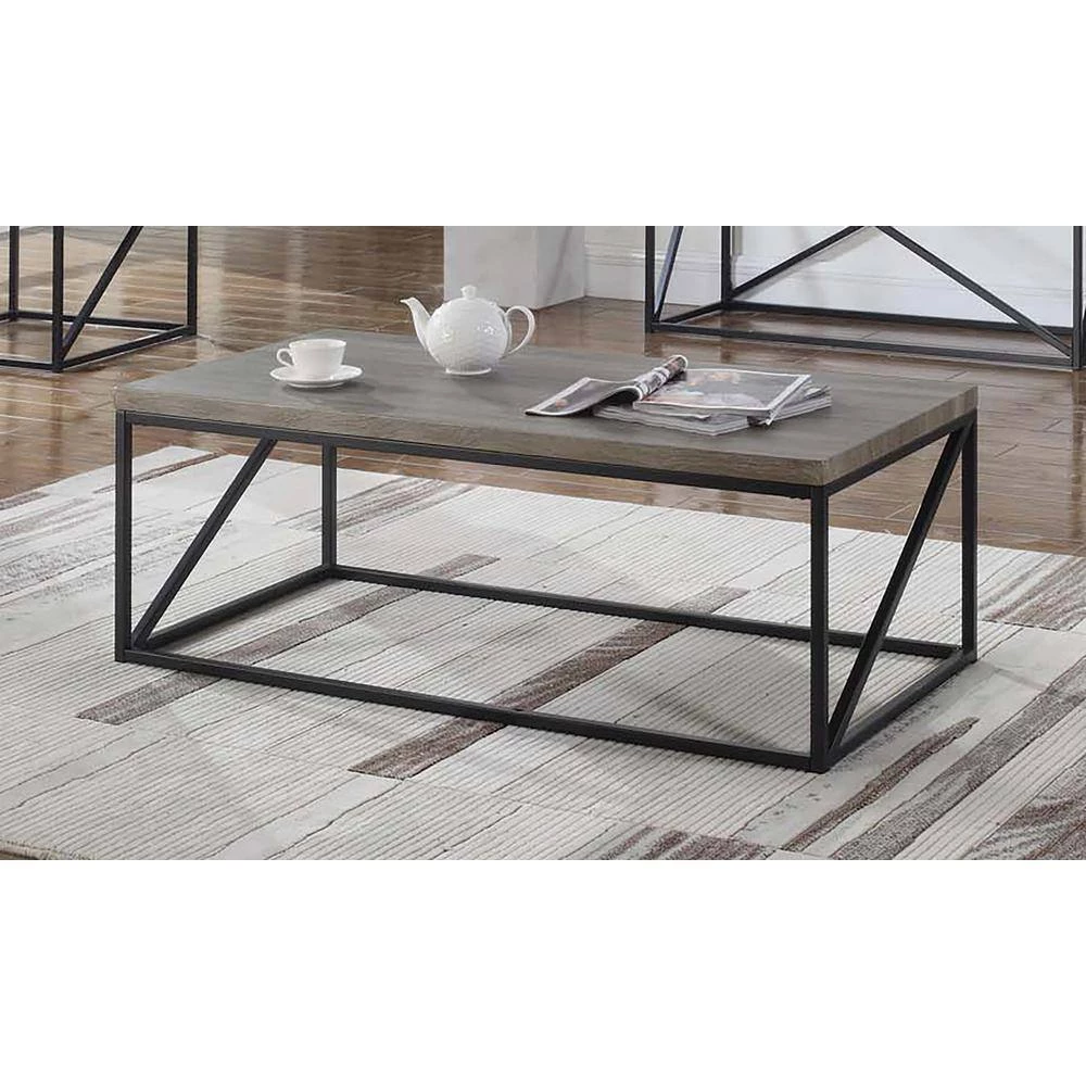 Celebrate contemporary design with the straight lines and angles from this modern coffee table. In a charming Sonoma grey finish, this table is complete with geometric shapes in the base. Marry rustic charm with modern industrialism in the combination of sleek metal and warm wood. The open frame is complete with deep hues that add structure and an airy feel to spaces. Complement a variety of motifs with the neutral tones from the legs and top.
