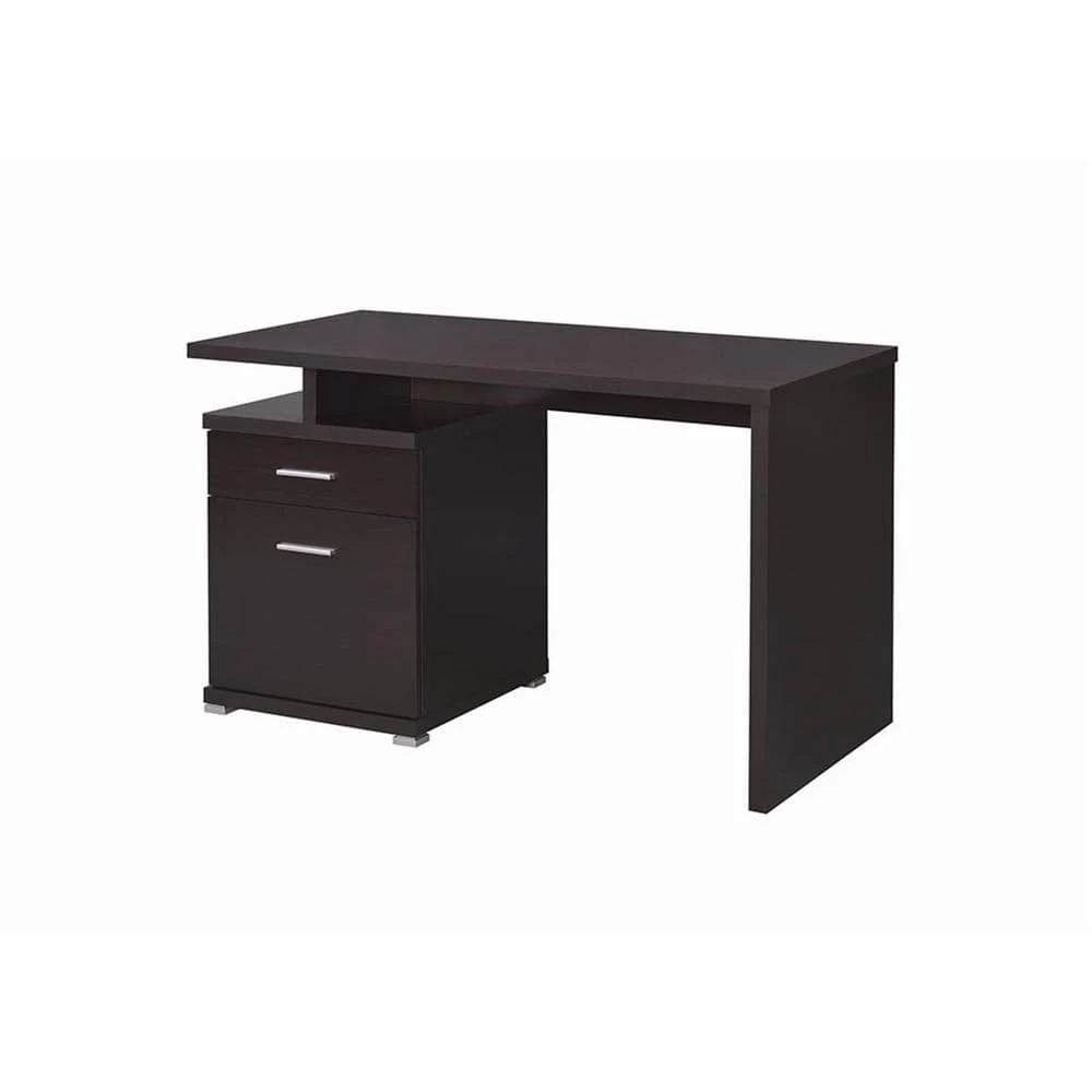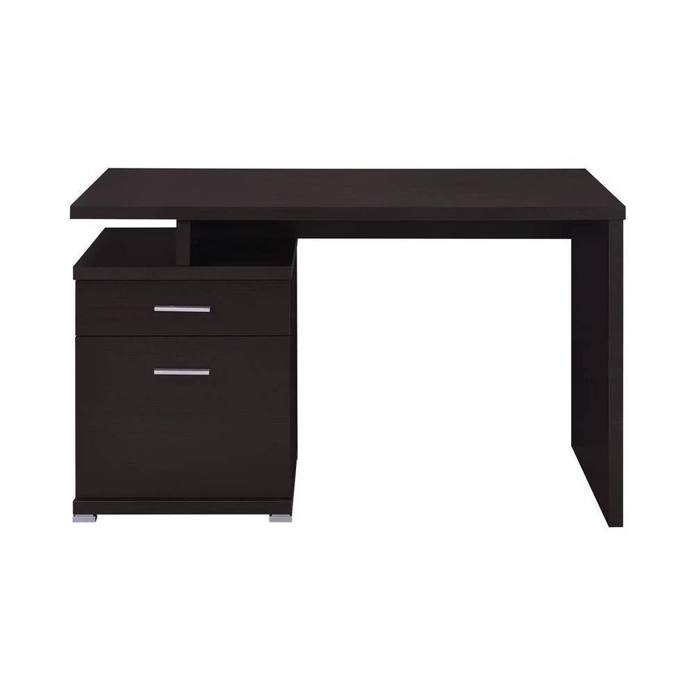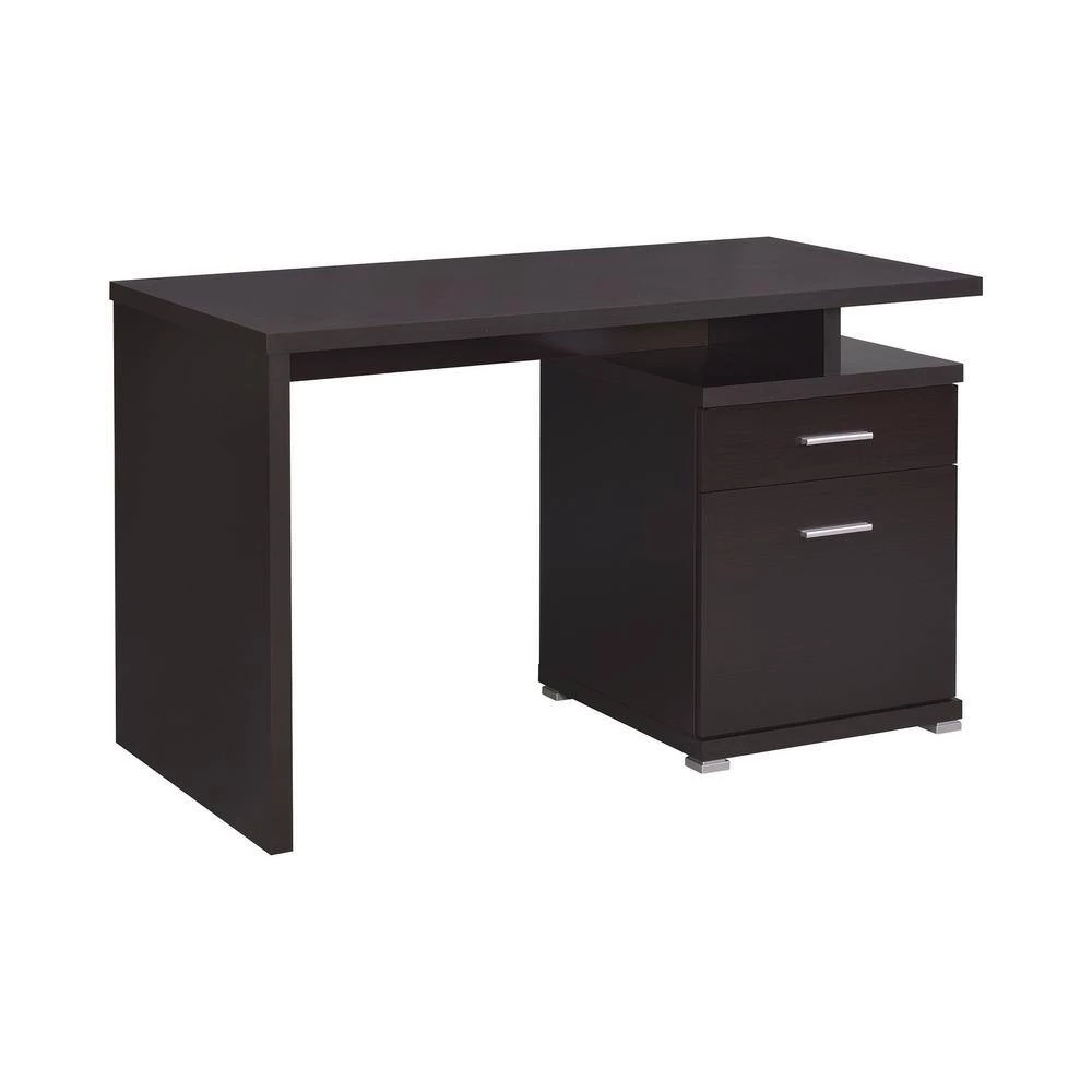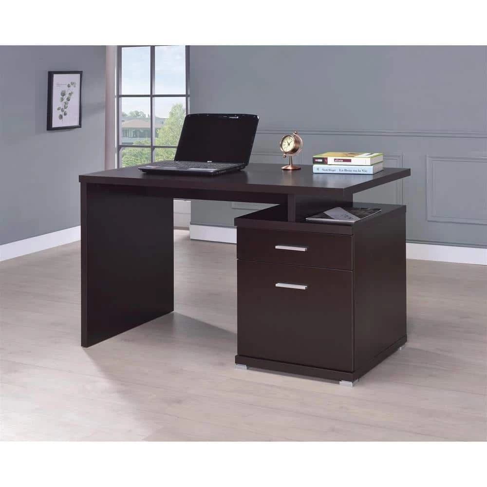 This office desk has everything you need to get the job done right. This convenient cabinet has a reversible set-up to fit the office space as you wish as well as a roomy desktop to get all your work done. It’s constructed with durable particle wood, MDF, and engineered veneer. It comes with a file cabinet sized for all your organizational needs, including holding both letter and legal sized files. This desk is suitable for a home office as well as a traditional commercial office space.