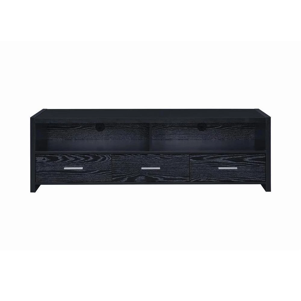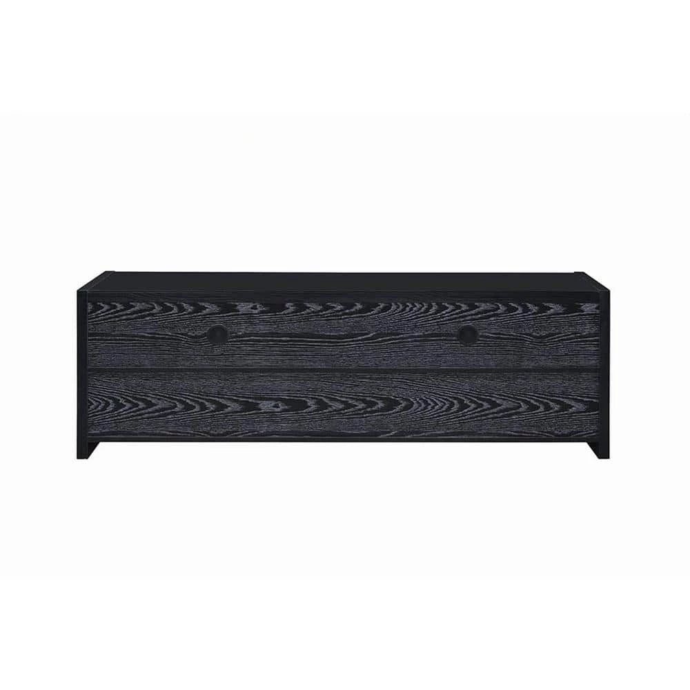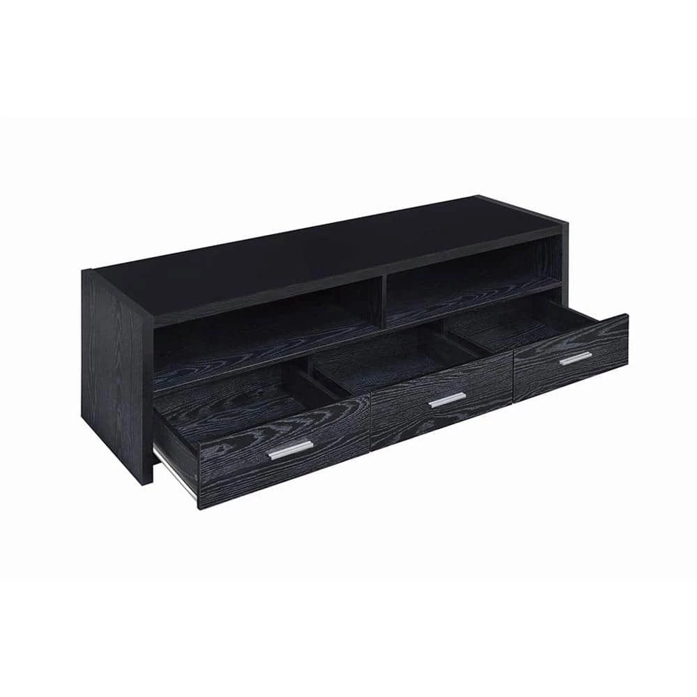 Sleek and modern, this TV console is a stylish choice. Exquisitely crafted from black oak, it boasts a classy, contemporary appeal that looks lovely in a den or family room. Brushed silver hardware creates a striking contrast to it’s bold, black finish. Three large drawers and two spacious compartments offer plenty of storage for electronics, games, movies and more. Whether you’re gathering loved ones for movie night or enjoying a gaming marathon, this console provides hours upon hours of entertainment.