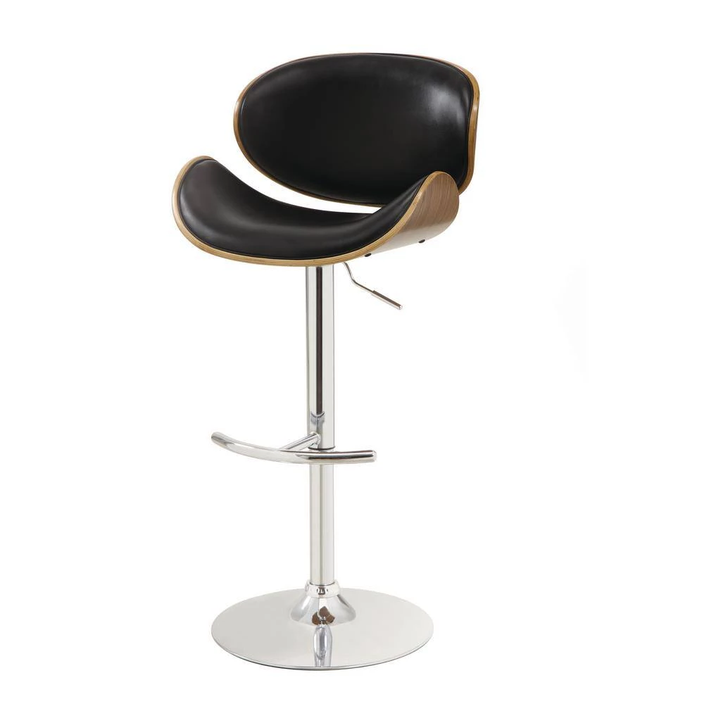 Enjoy glamour and durability with this barstool’s distinguished form. For added style, it features a sleek, curved wood seat back finished in rich, warm walnut. The brilliant shine of chrome beautifully balances with the smooth, black leatherette upholstery of its seat. A gas lift offers easy adjustability to help it fit with a variety of table heights. This stool gives an edgy and modern look to any room.