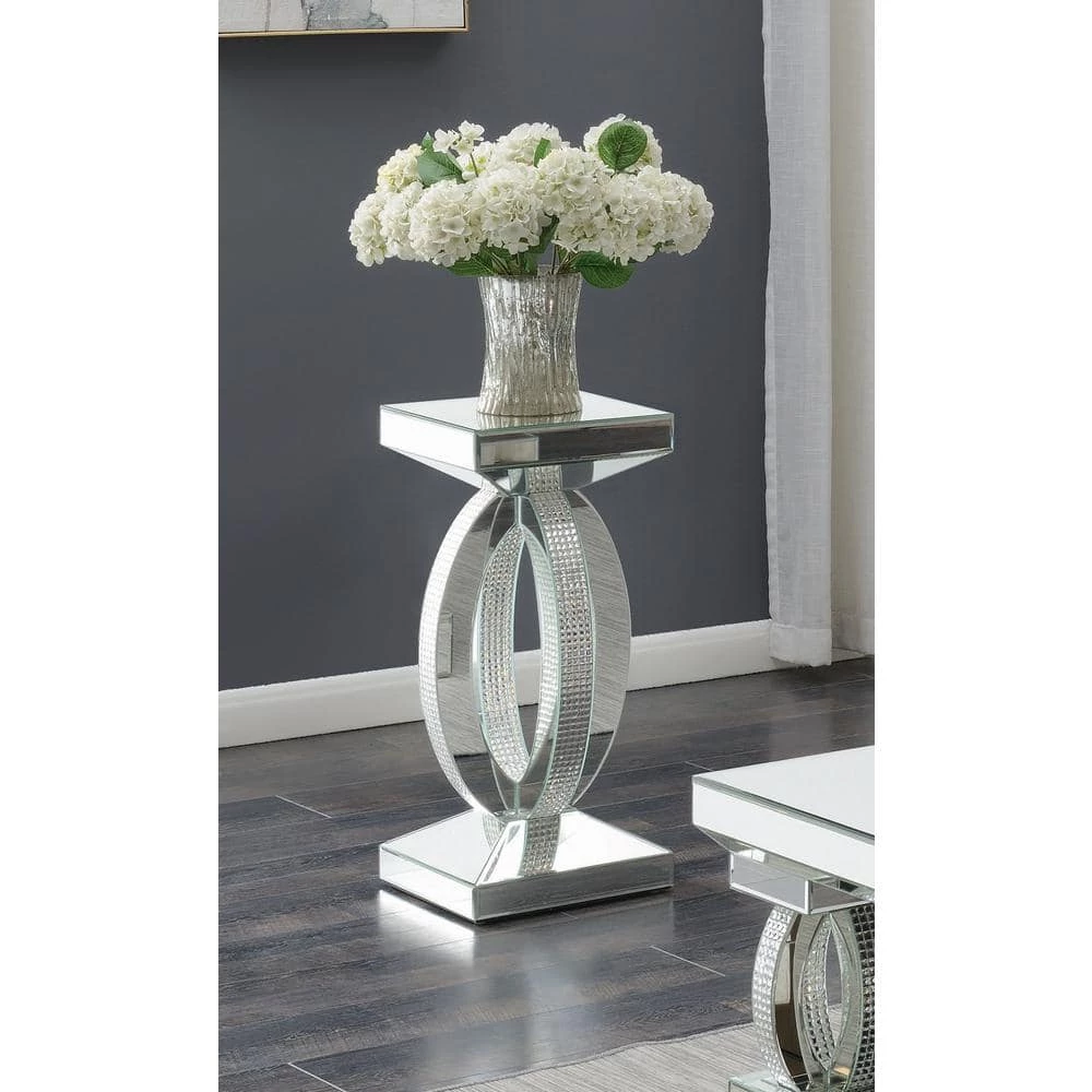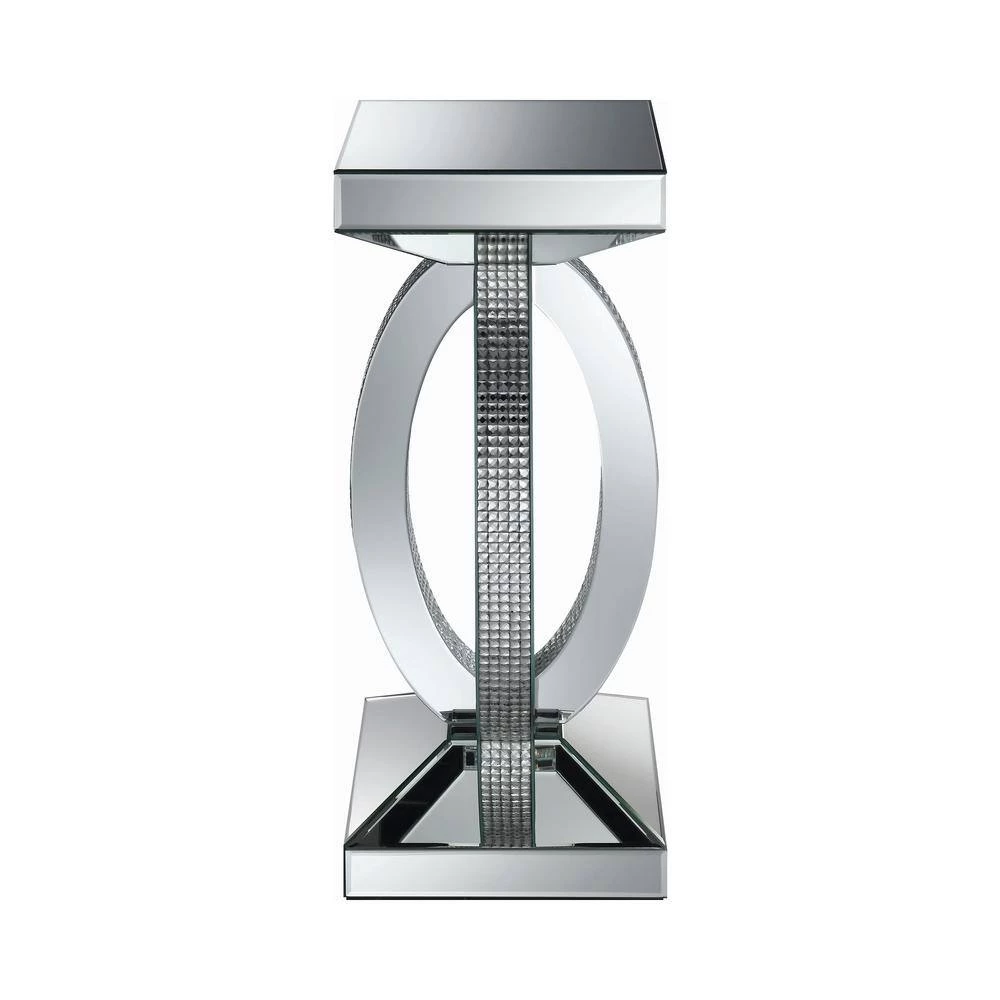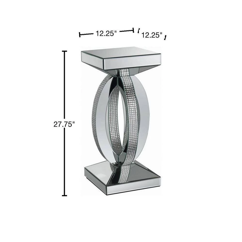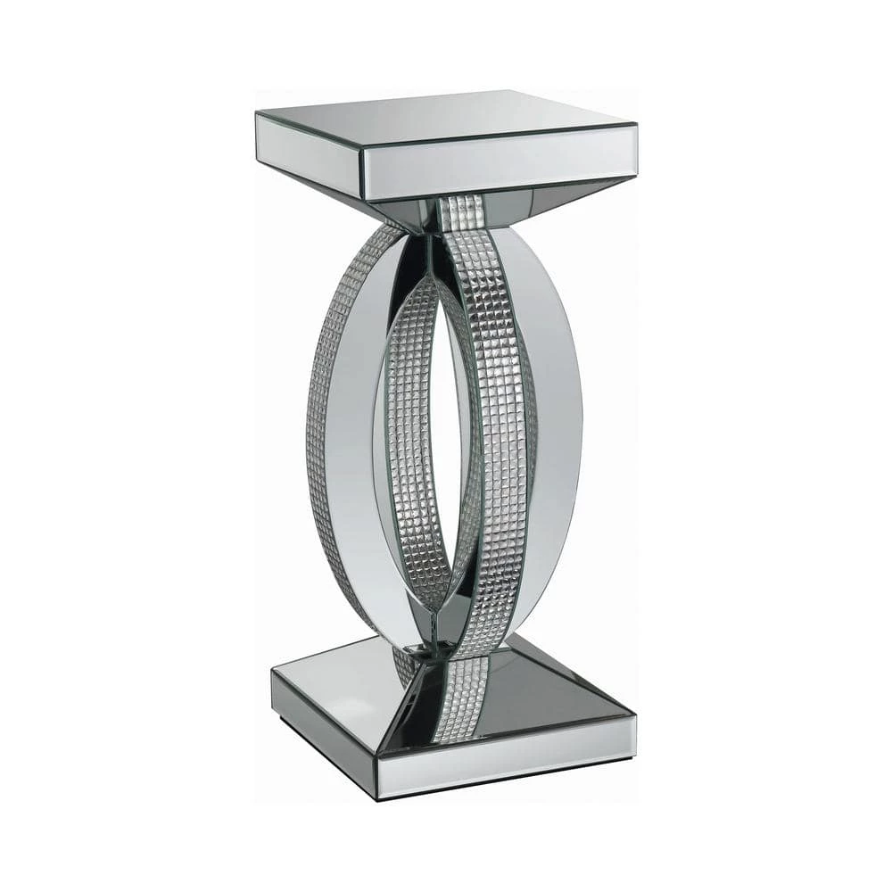 Sleek and contemporary, this striking end table will add an artistic edge to your decor. Its solid, square base forms a sturdy foundation for its stunning design. Four bold, c-shaped supports fuse together to form a stylish silhouette. Topped off with a chic, tapered, square surface, it exudes effortless glamour. With its delightfully modern aesthetic, this table instantly upgrades the style of any modern home.