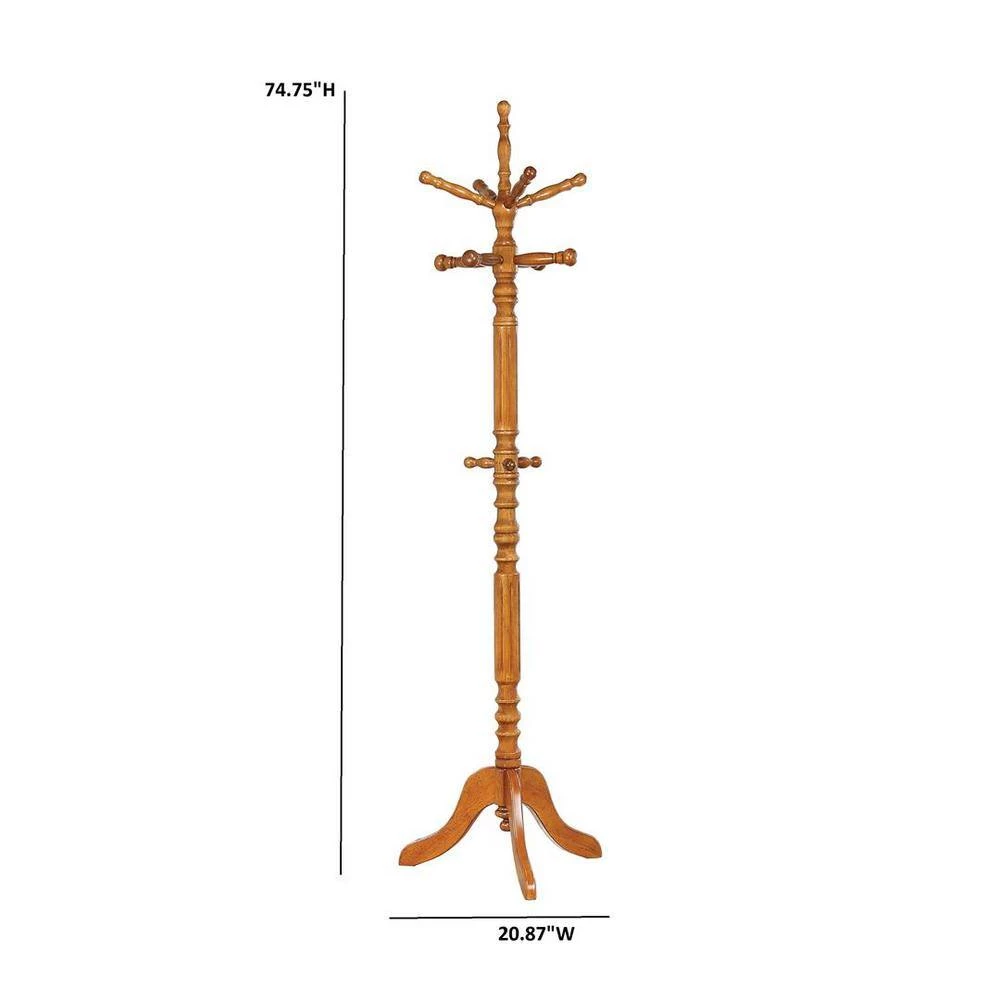 Ornate and functional, this charming coat rack offers a stylish uplift. Make a traditional space work with a tall rack that organizes outerwear, hats, and scarves. Placed in an entryway, it offers quick and easy access to guests coming in and going out. A gorgeous tobacco finish is warm and radiant. Find rotating arms that aid in reaching hung items without tangling.