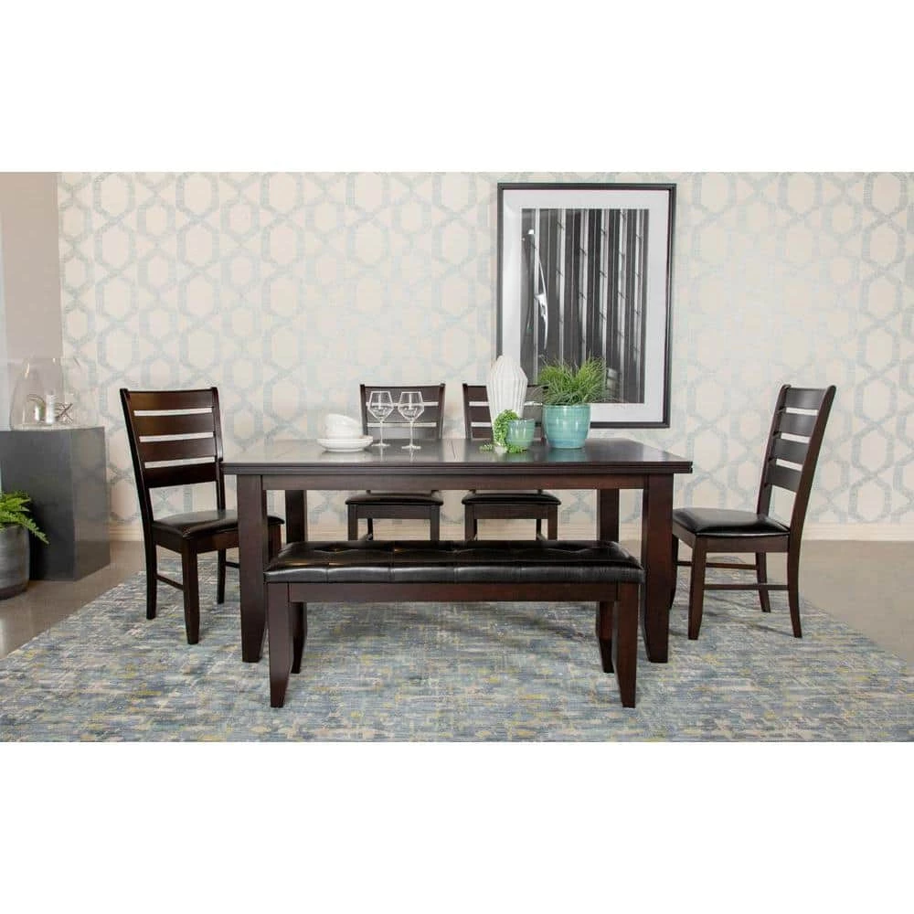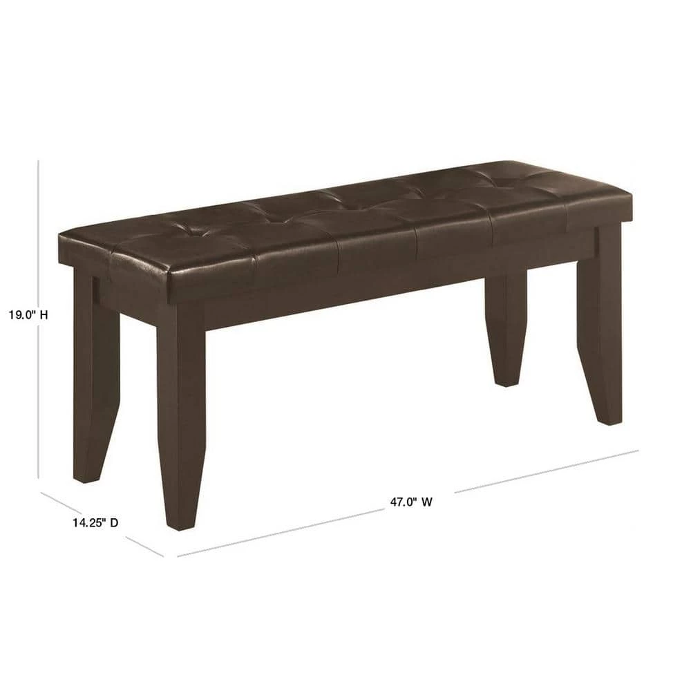 Study bench is a unique distinction of the Dalila Collection. Fashioned from hardwoods and oak veneers. Stout legs are finished in cappuccino and will stand up to daily (over)use. A casual companion of the dining table from the same collection, this bench will become a favorite. Padded seat for comfort and built for any combination: three children or two adults – even a cat, dog, and child.