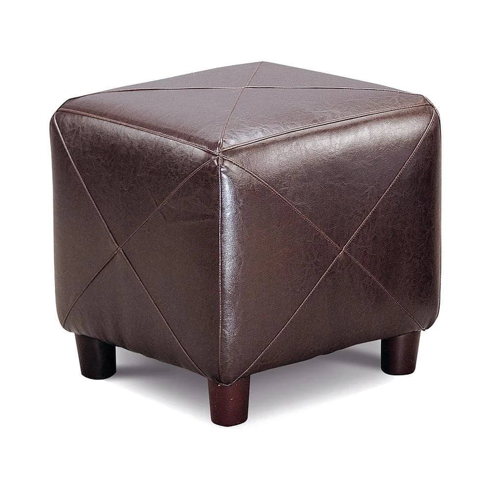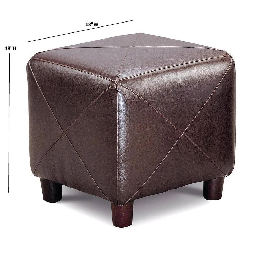 A solidly constructed ottoman conveys authority and simplicity. This ottoman has both in abundance. Its-Cube shape is austere enough for a home library. Wrapped in brown deluxe leather-like material, it’s the perfect place to prop up socked ft. at the end of a hard day at the office. Clean lines and tapered legs are more suited to a rye Manhattan than a light beer (but that’s a personal choice.).