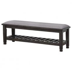 Burnished Oak and Beige Bench with Lower Shelf 18.5in x 50.5in x 17.75in by Coaster Home Furnishings