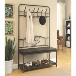 Dark Walnut and Dark Bronze Hall Tree with 6 Coat Hooks by Coaster Home Furnishings