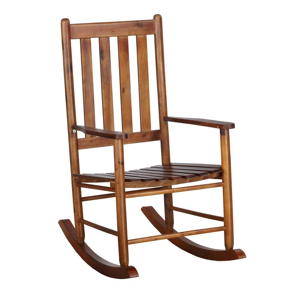 Place this timeless rocking chair in a reading nook or on a covered porch to relax after a long day. A slatted style backrest and seat offer a minimal Mission style design that works with numerous decor. Perfect for a traditional style home, it lends itself nicely rustic farmhouse cottages and mountain retreats. Smooth, straight arms cradle you inside and bring comfort and 2 long rockers offer a calming motion as you read a book or rock a child to sleep. Crafted of solid acacia wood, this rocking chair is built to last for many years in a home.