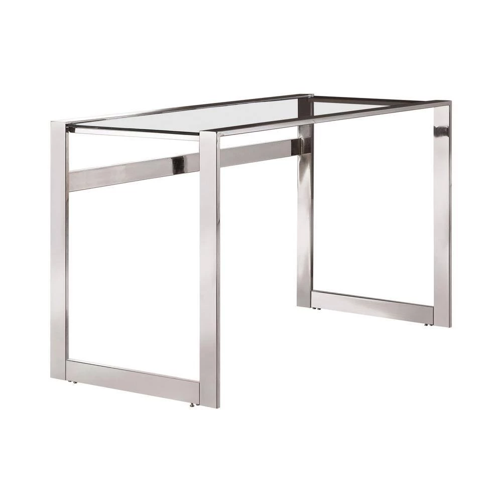 It’s a writing desk that’s perfect not only for writing but also for designing ad brainstorming. Lay out the design plans or concepts across its spacious, clear tempered glass top. With its steel construction, it’ll stand up to those all-night sessions of hashing out the perfect concept that’ll change the world. Finished in chrome, the desk has the modern styling that inspires. This desk is the ideal piece in a contemporary commercial or home office.