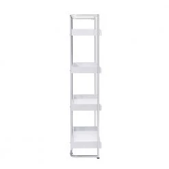 Ember 67.5 in. White High Gloss and Chrome 4-Shelf Accent Bookcase by Coaster Home Furnishings