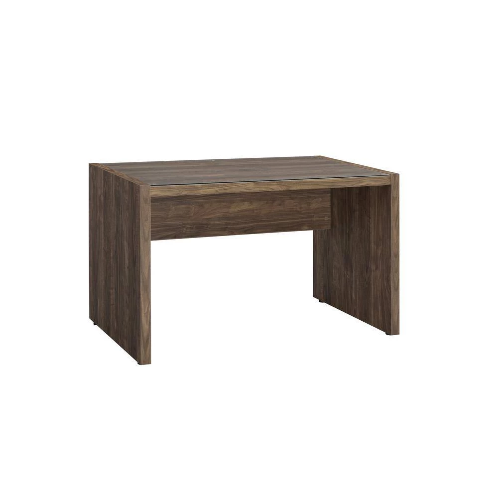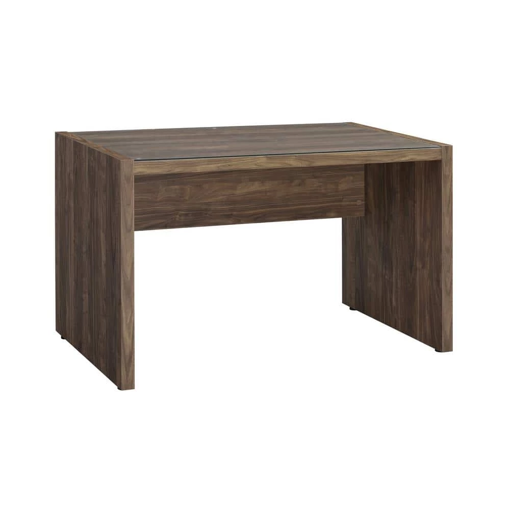 The sleek construction of this writing desk will have you doing day-long typing sessions. A simplistic rectangular tabletop is crated with tempered glass, giving plenty of room for a computer and notebooks. Slim yet sturdy legs provide incredible support. The aged walnut finish makes this a fantastic rustic style writing desk. Choose this piece for an immediate upgrade to your office.