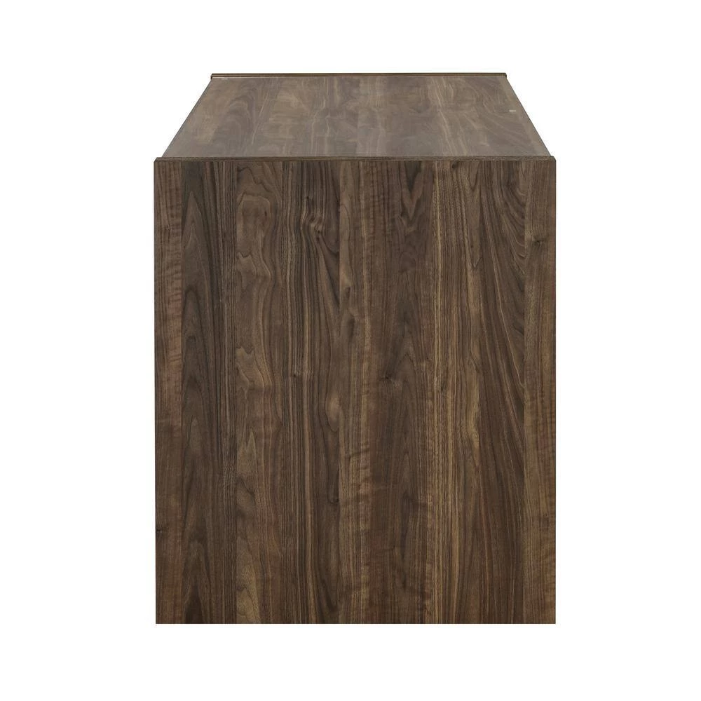 - Modern home office collection with scratch-resistant engineered veneer finished in aged walnut