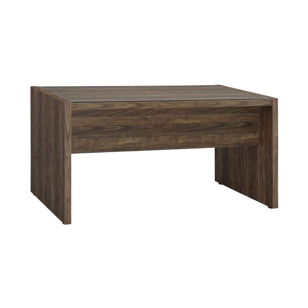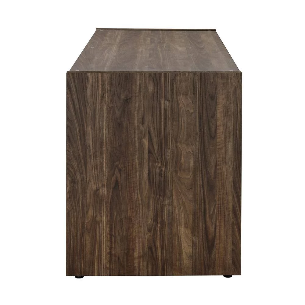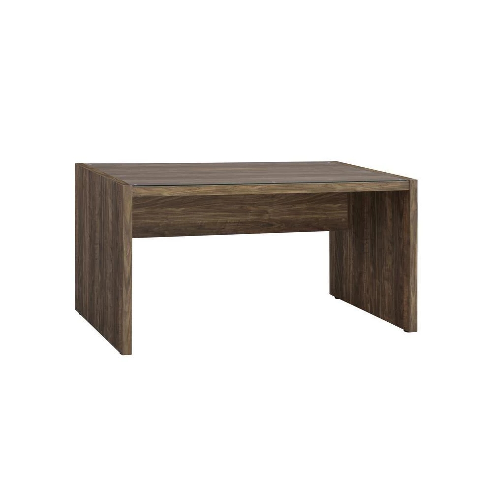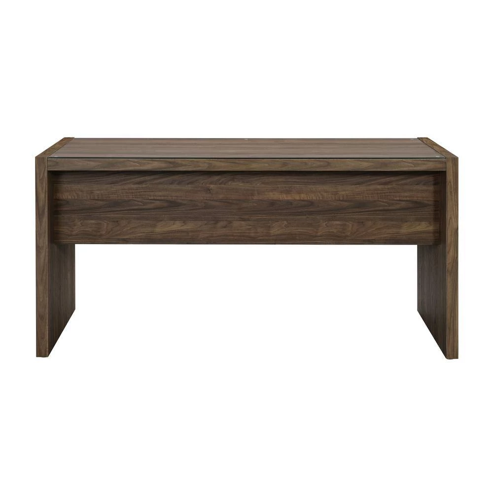 - Modern home office collection with scratch-resistant engineered veneer finished in aged walnut