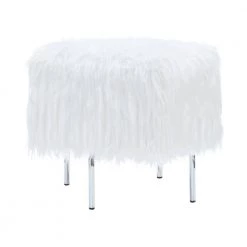 White and Chrome Faux Sheepskin Upholstered Ottoman by Coaster Home Furnishings