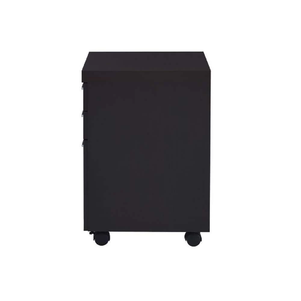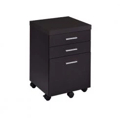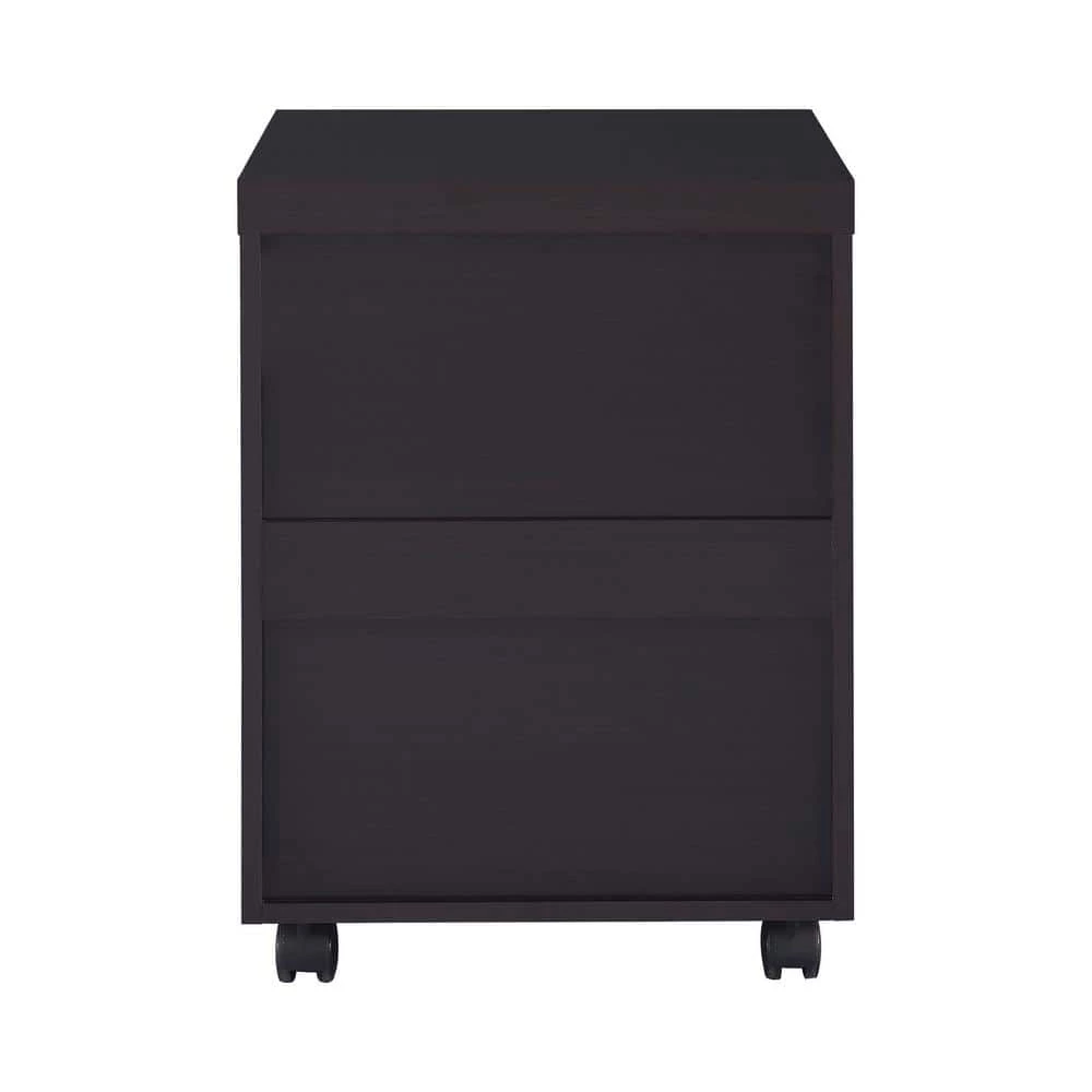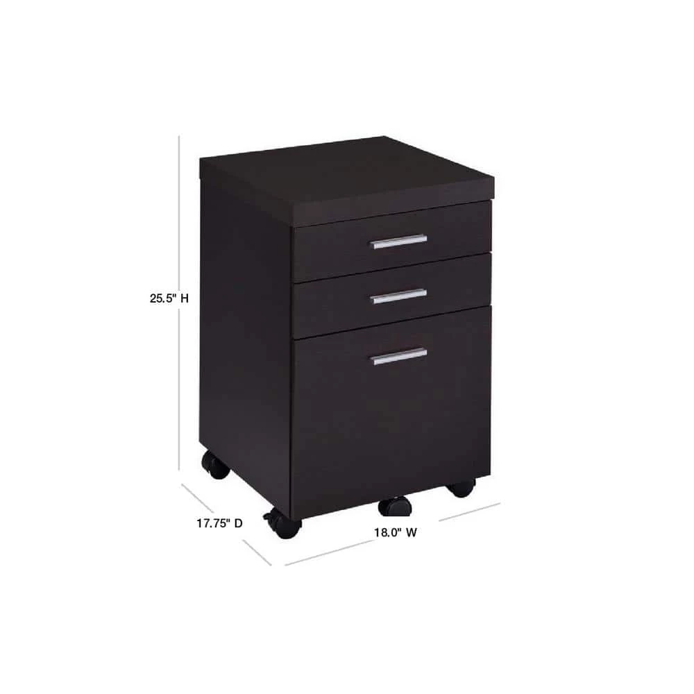 Organize files in style. This mobile file cabinet offers plenty of room to store documents in a desk configuration. With a gorgeous cappuccino finish, it brings a stylish look to a home or business office. Silver hardware pads its modern appeal. Built-in casters and a storage drawer expand the functionality of this mobile file cabinet.